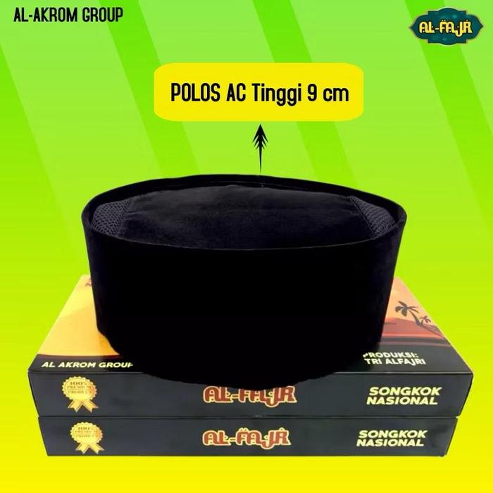 Peci Songkok Kopiah Muslim Motif Hitam Polos AC Untuk Anak dan Dewasa - Polos AC Tinggi 9 cm No.1