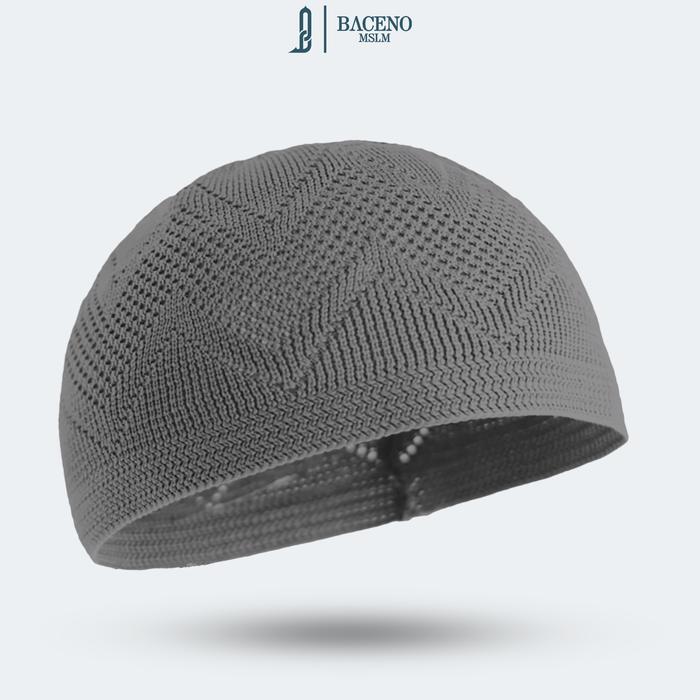 BACENO MUSLIM Peci Rajut Pria Model Mercan Pola Zigzag - Abu Tua