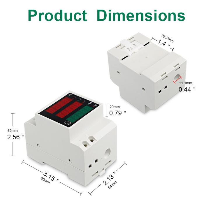 Watt Meter DIN Rail AC Multi Volt Ampere kWh Cos Phi 2 Color Panel MCB
