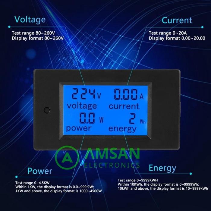 Peacefair PZEM-021 kWh meter digital 20A watt meter AC