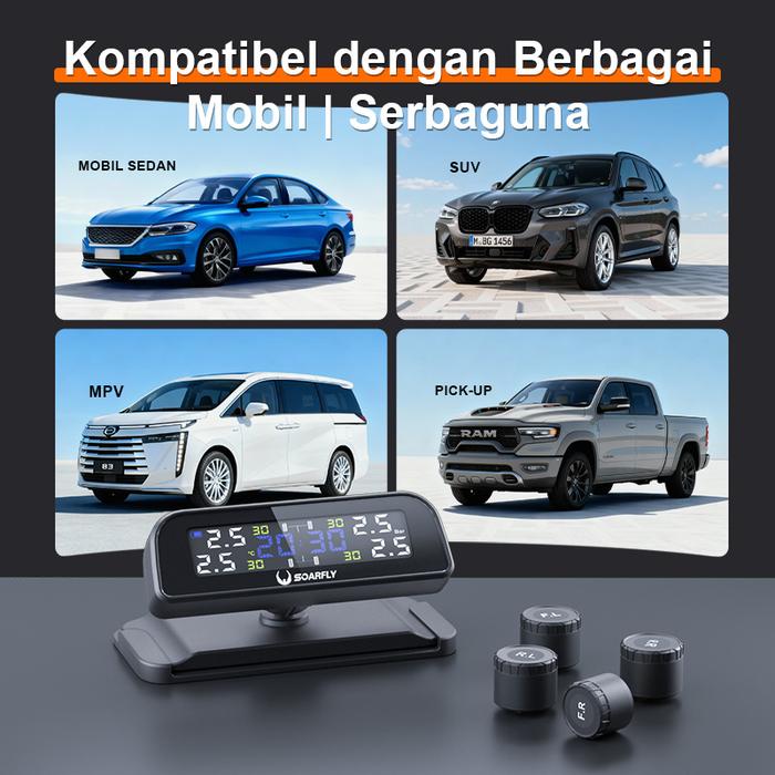 Gegar 2026TPMS Alarm Pengukur Tekanan Ban Mobil Tire Layar Monitor System LCD Solar Power pemantauan