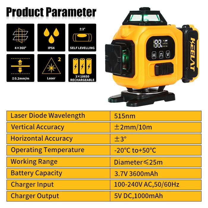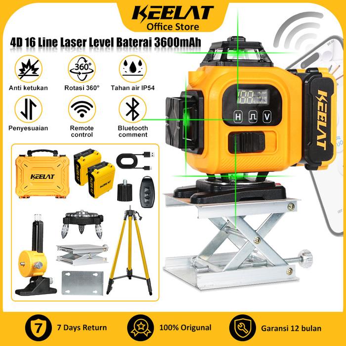 Baru 2025KEELAT 16 Line Laser level 4D Tingkat Laser Basis berputar 360 Baterai 3600mAh Waktu siaga
