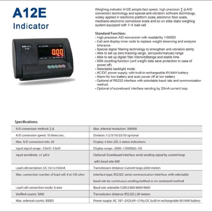 Indicator timbangan SONIC A12E / Indicator timbangan digital sonic a12e built rs232 / Monitor sonic