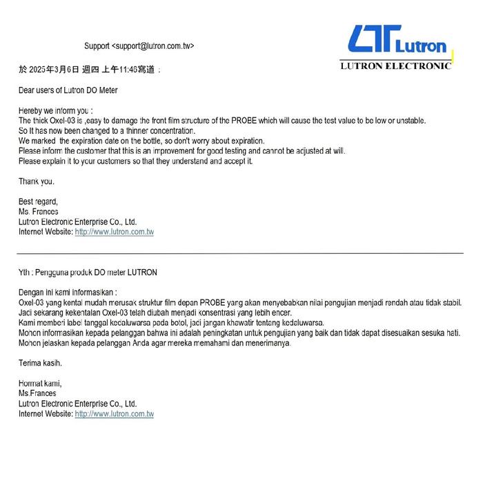 Lutron OXEL-03 Probe Filling Electrolyte
