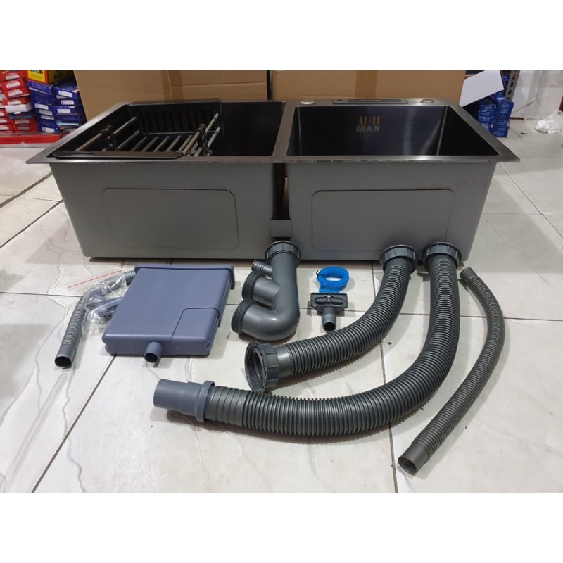 Kitchen Sink Black Hitam 8245 / Wastafel Bak Cuci Piring 2 Lubang Stainless Sus304 Tebal 3Mm 82X45 Anti Karat