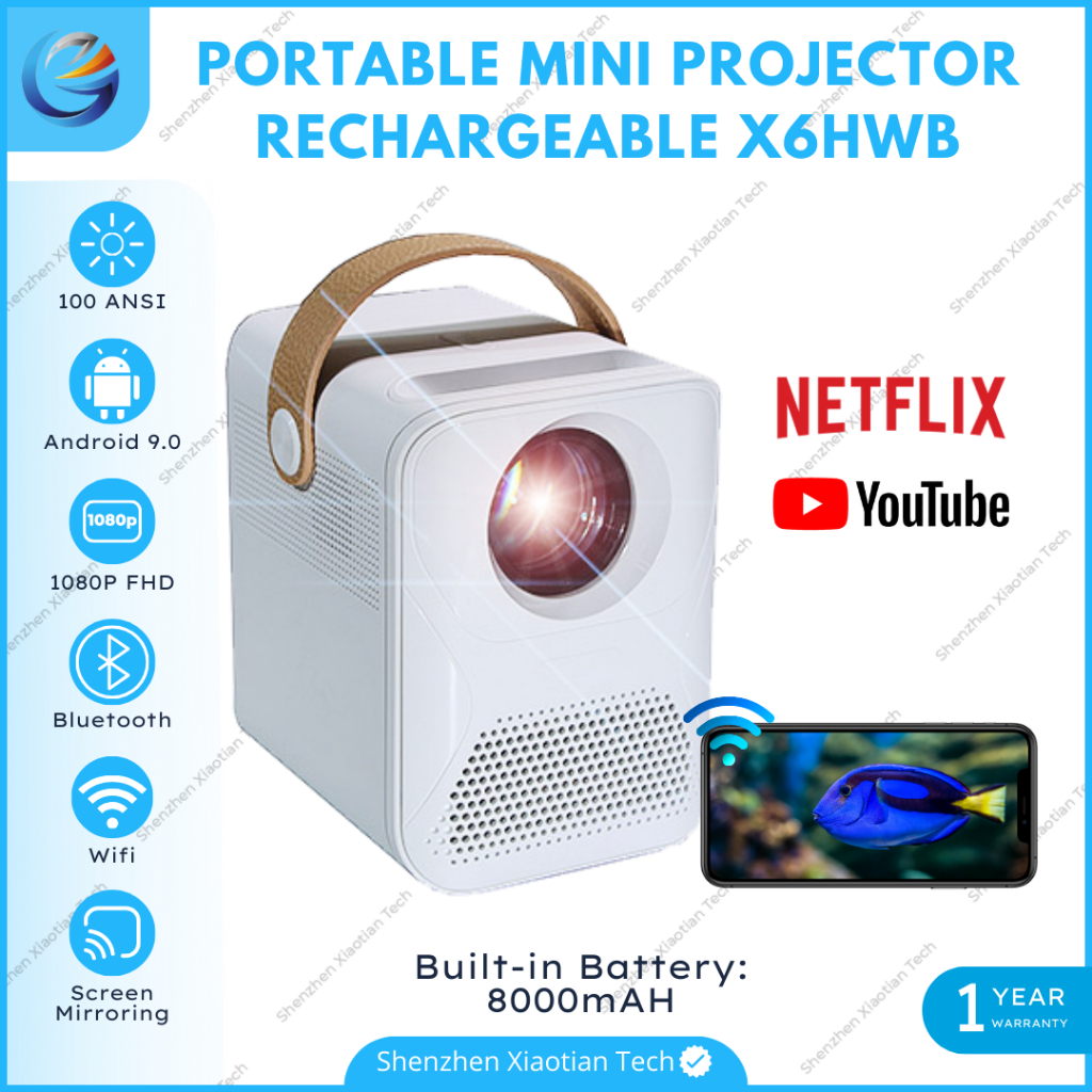 Smart Proyektor X6HWB Android Wifi 100 Ansi Lumens | Proyektor Android 4K Full HD | Proyektor Mini Portable | Proyektor