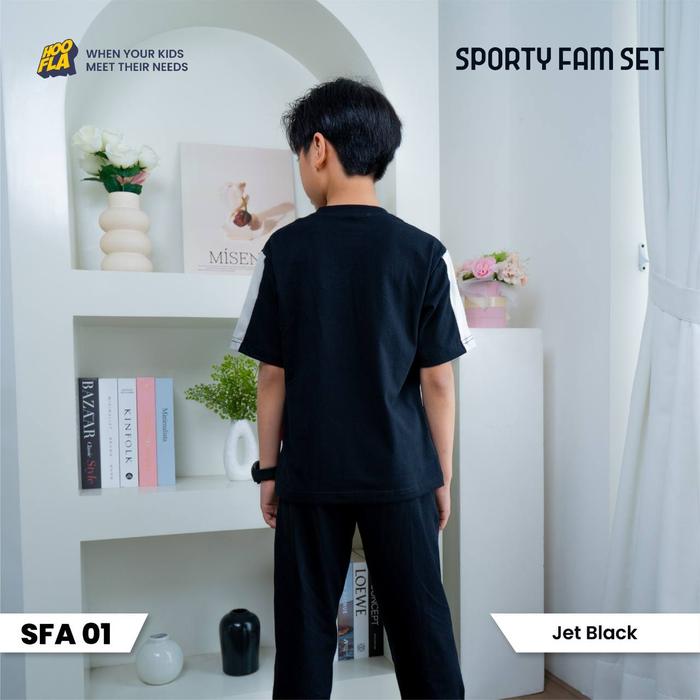 Hooflakids - Setelan Olahraga Anak Perempuan Dan Laki Laki | Senam Lari | One Set Sport Family - Sfa Jet Black, M 5-6
