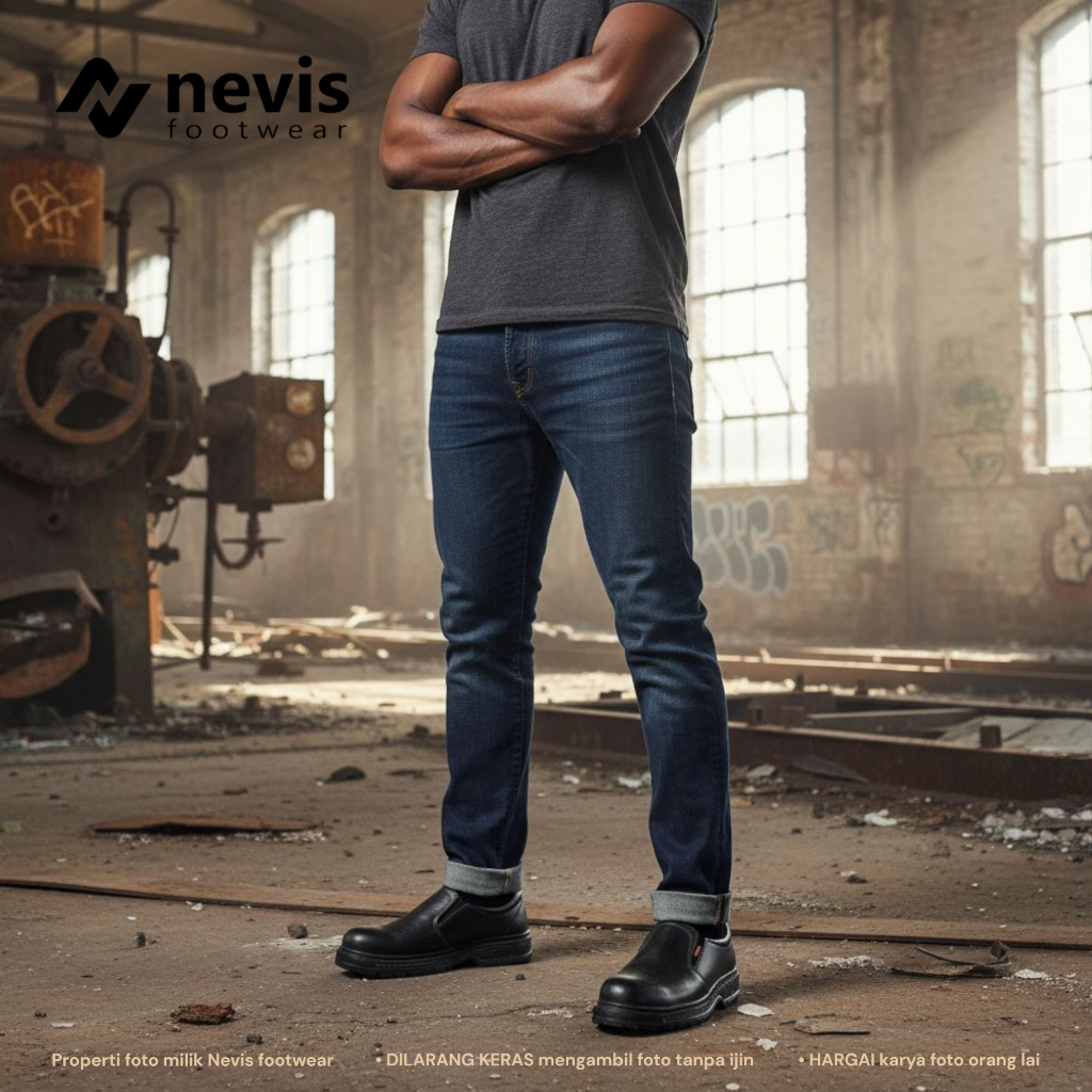 Nevis Asgard Sepatu Safety Slip On Pria Original 39-45 Ujung Besi Kerja Proyek Lapangan Sefty Shoes