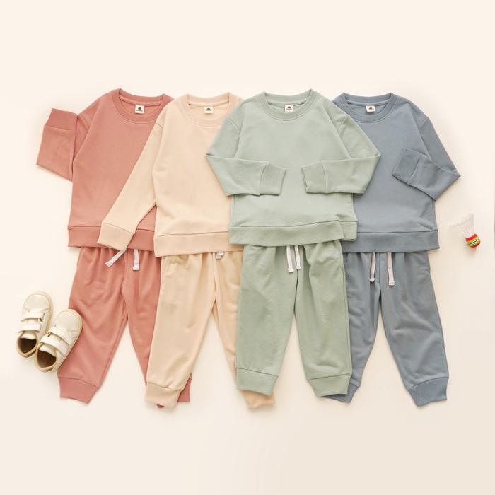 Peewee Setelan Sweater Jogger Set Motif Anak 1-12 Tahun Perempuan Casual Pas Suits & Sets - Nude Beige, 1-2 Tahun