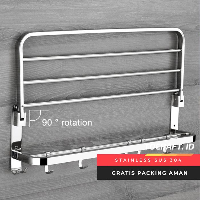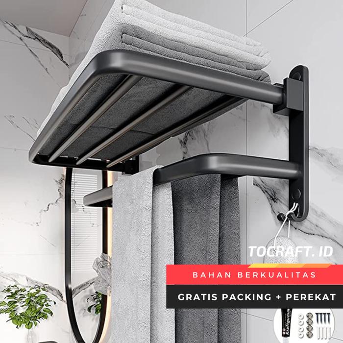Rak Handuk Gantungan Baju 2 Tingkat Tempel Tembok Kamar Mandi Toilet - Putih