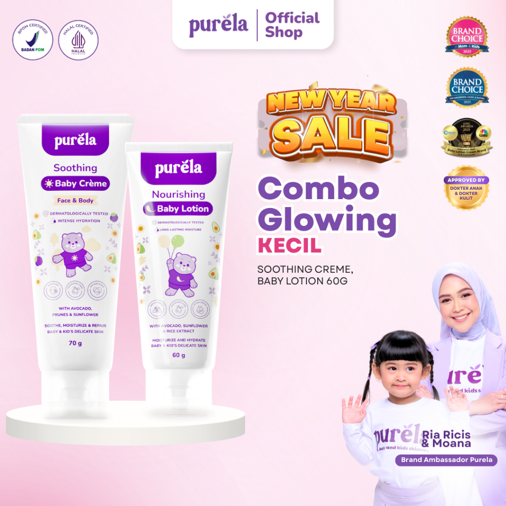 PURELA COMBO GLOWING (NOURISHING BABY LOTION & SOOTHING BABY CRÈME) - PERAWATAN PENCERAH KULIT ANAK AMAN UNTUK ECZEMA SENSITIVE SKIN - BAHAN ALAMI DAN ORGANIK