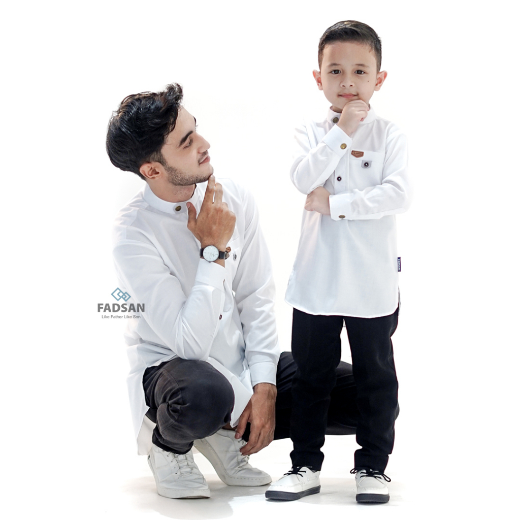 Baju Koko Kurta Pakistan Couple Ayah Dan Anak Leon Warna Putih - FADSAN