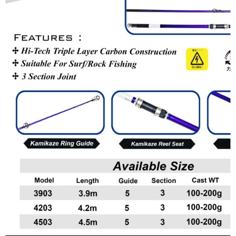 Joran Surf Casting Kamikaze Proton 390 Cm Joran Pantai Sambung 3
