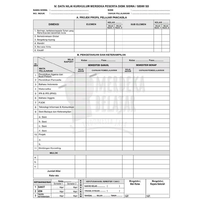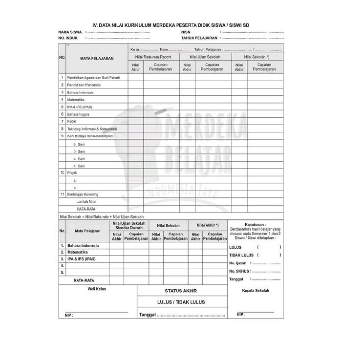 Buku Induk Register Kurikulum Merdeka Sd Isi 50 Siswa