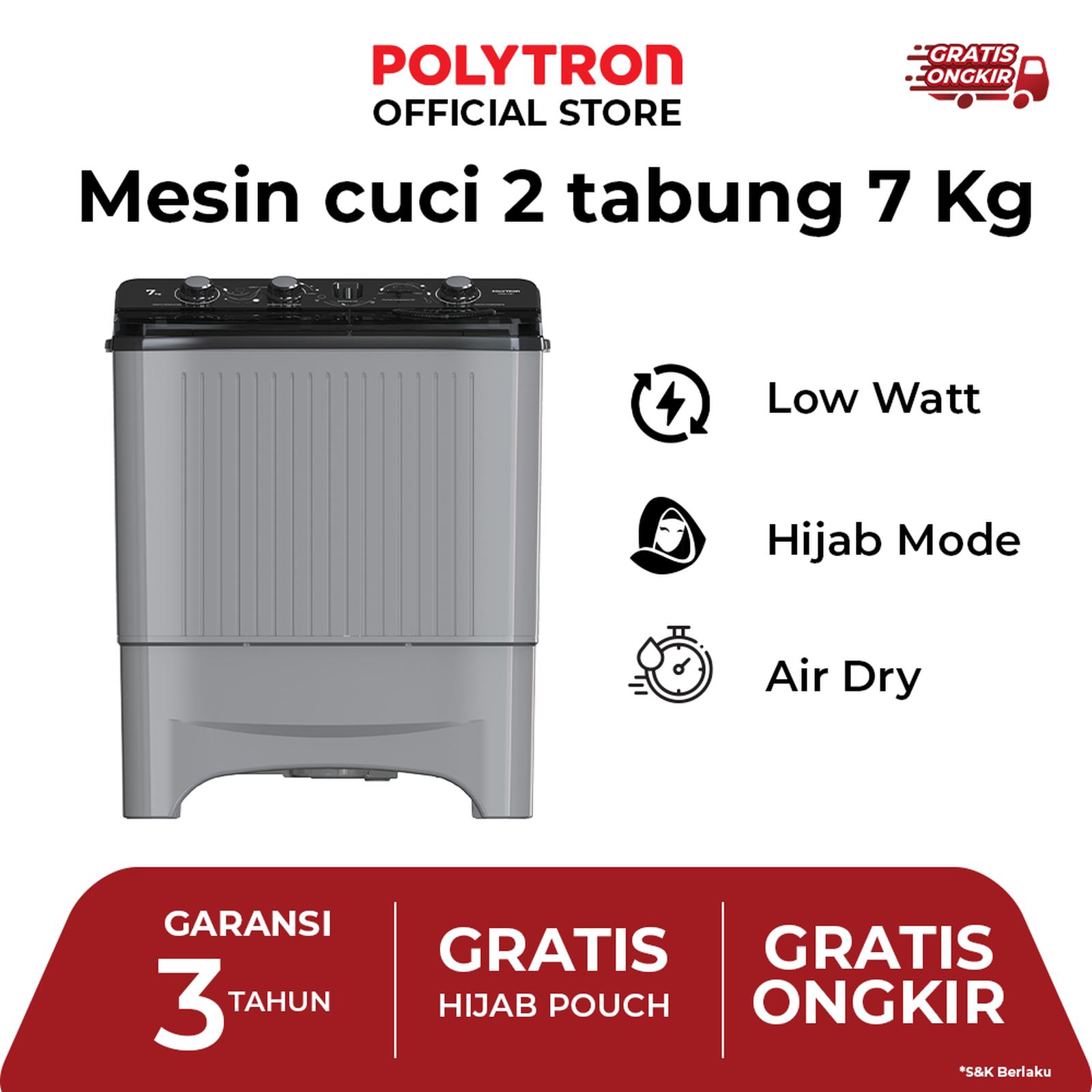 GRATIS ONGKIR BANDUNG KOTA - Mesin Cuci POLYTRON PWM 7081 Y 2 Tabung 7 KG Hijab Series Twin Tub - mesin cuci polytron