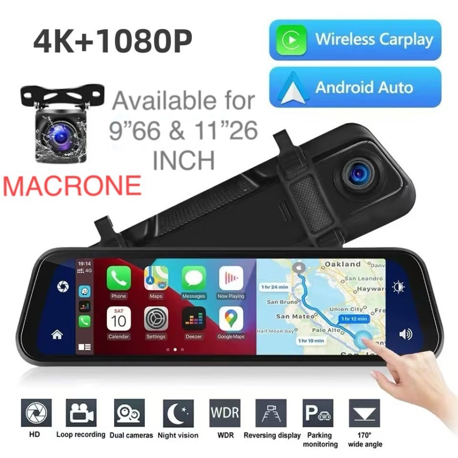 KAMERA DASHCAM DVR SPION MACRONE 4K+1080P SUPRT CARPLAY & ANDROID AUTO - 9"+SANDISK 64GB