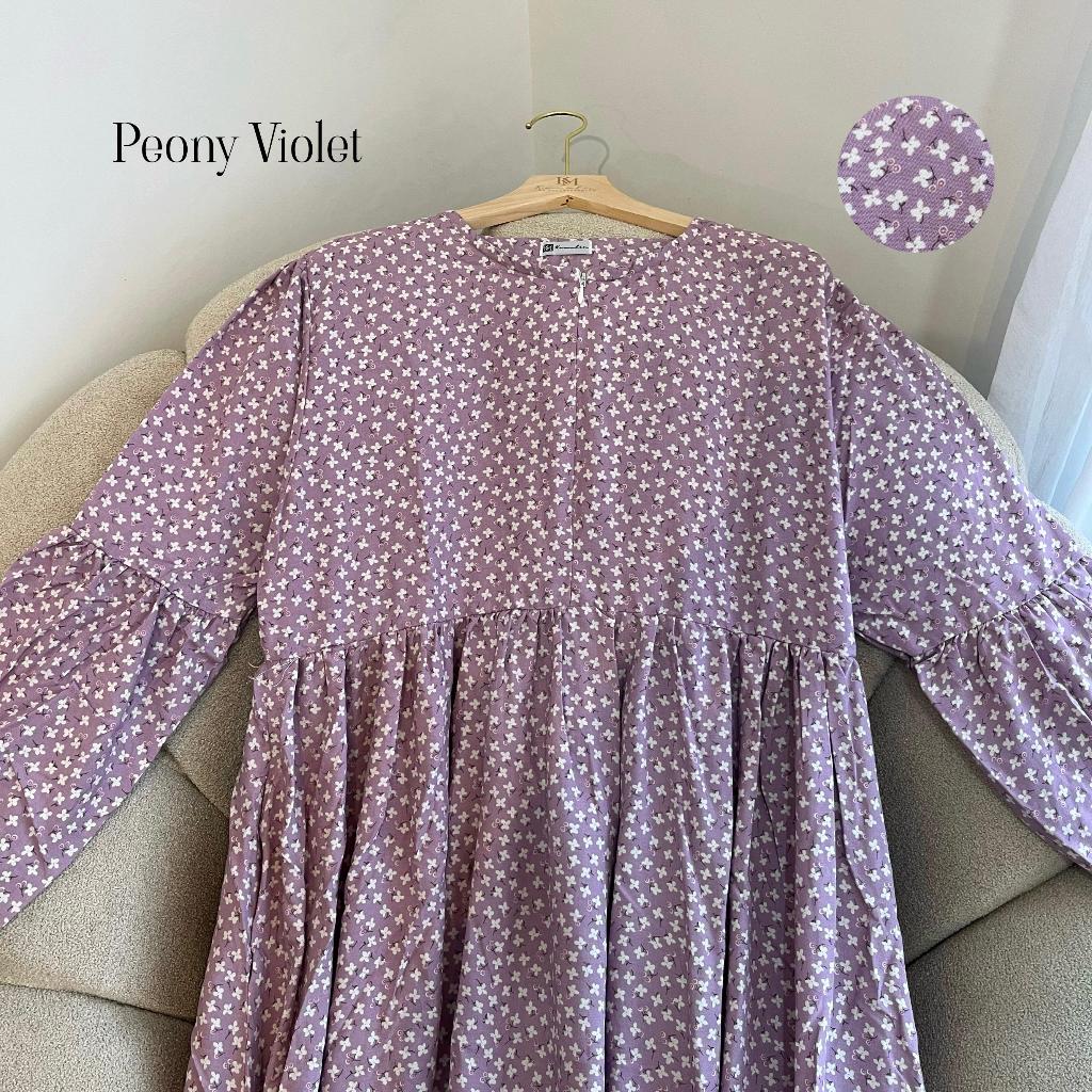 Midi Dress Rayon Premium Jumbo Busui Zipper Motif Peony By Kamalin
