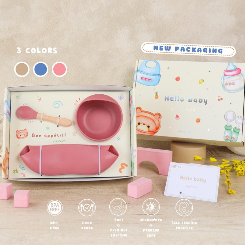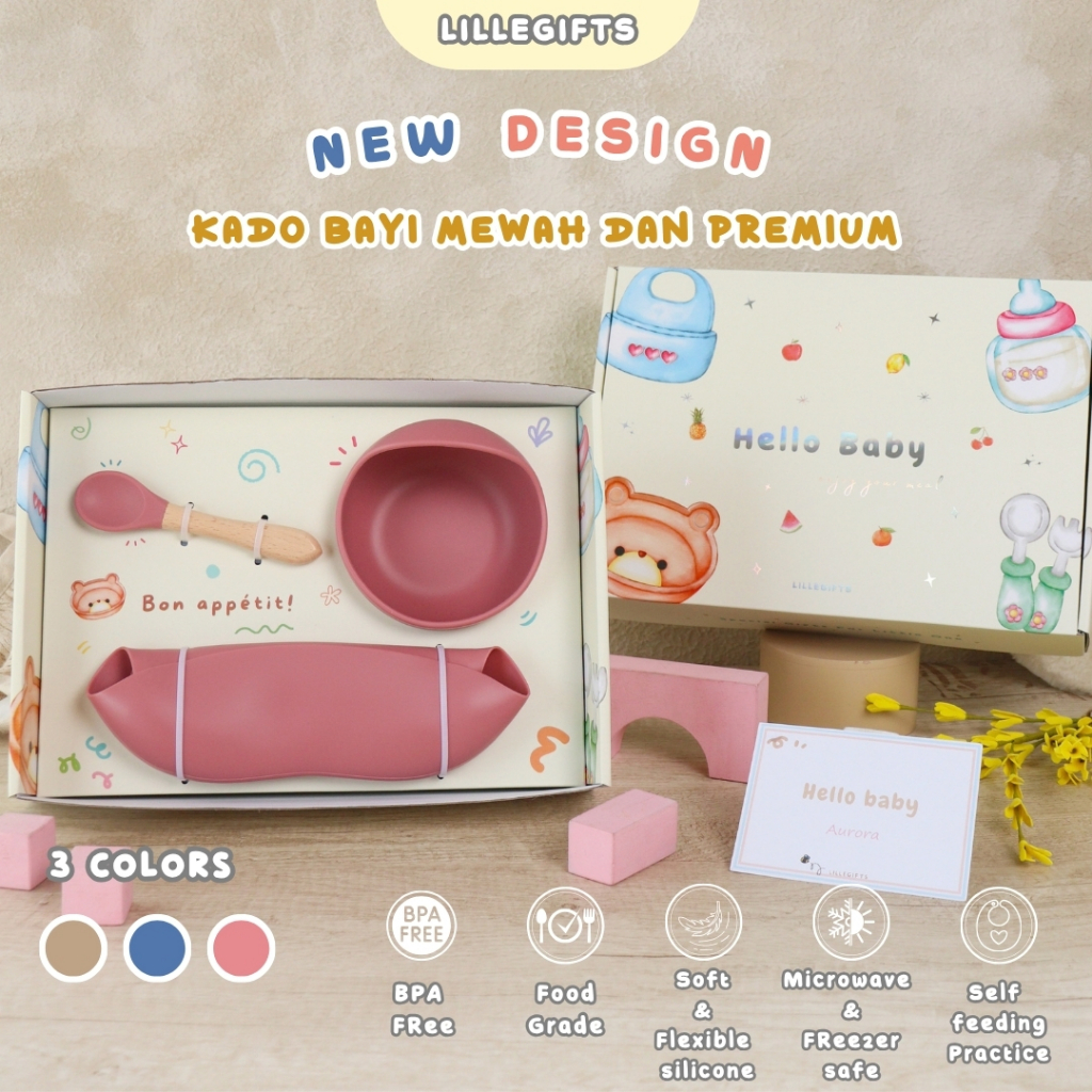 LILLEGIFTS Hampers Bayi Feeding Set Silicone Baby Alat Makan Silikon Bayi MPASI Newborn Kado Lahiran