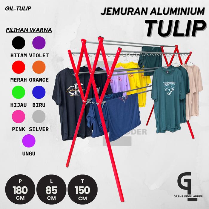 Gil - Tulip Jemuran Pakaian Aluminium / Jemuran Baju Lipat / Rak Handuk Bayi Jumbo Besar Warna Palang 9 Ukuran 180 Cm