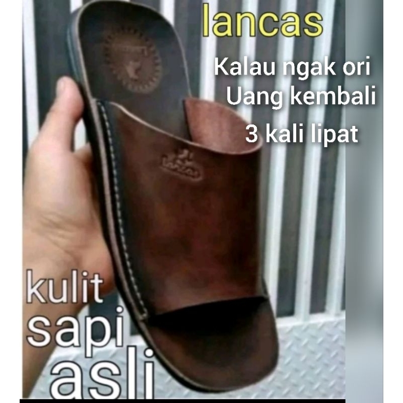 Sandal Lancas Pria Kulit Sapi Asli 100 PERSEN Full Kulit Sampai Alasnya