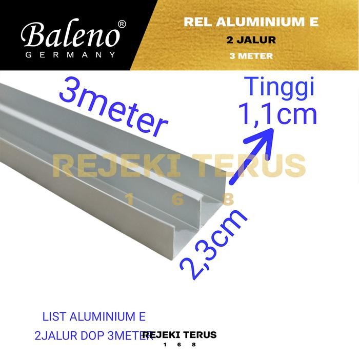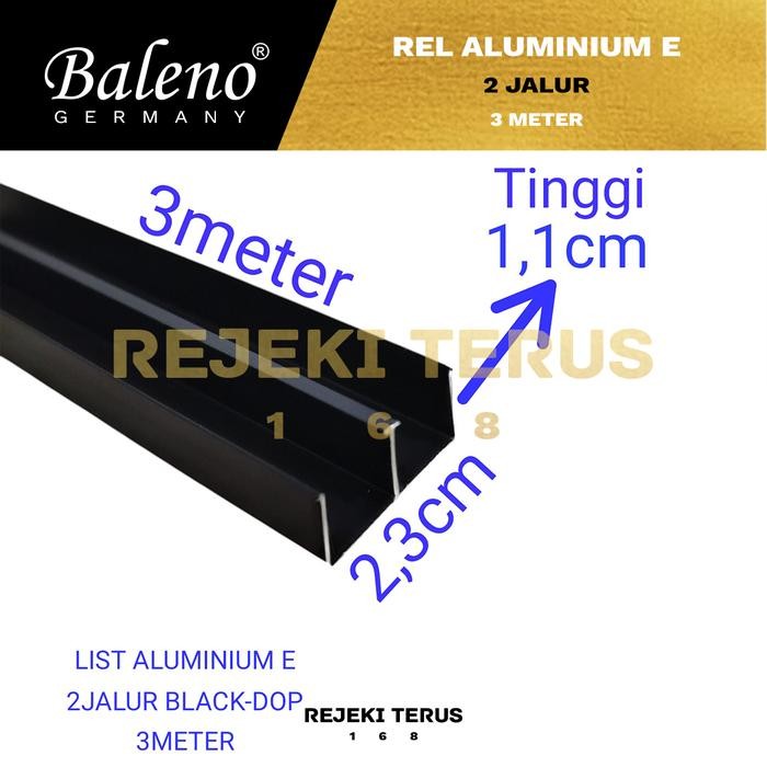 Rel Aluminium E/M 2 Jalur 2 Meter Baleno Kolong Dapur Etalase Tutup Kaca Sliding 5Ilver Hitam Geser