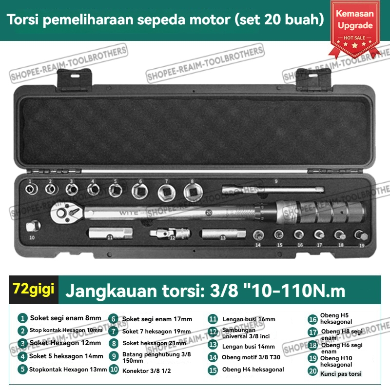 Reaim 1/4 1/2 Torsi Preset Torsi Kunci Pas Drive Alat 10-210 Nm Positif Negatif Dua Arah Penyesuaian Kunci Pas Perbaikan
