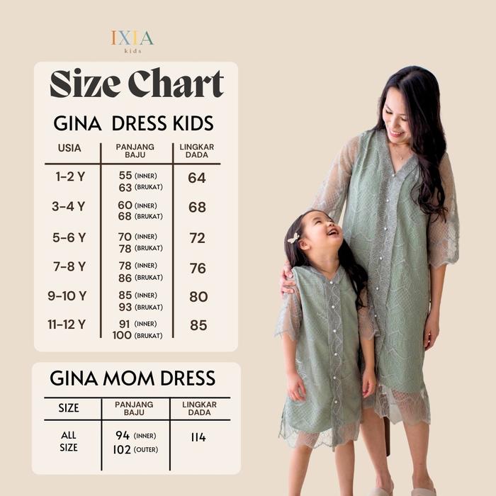 Ixia Kids Gina Dress / Baju Dress Couple Ibu Anak Perempuan 1-12 Tahun - 3-4Y, Sage