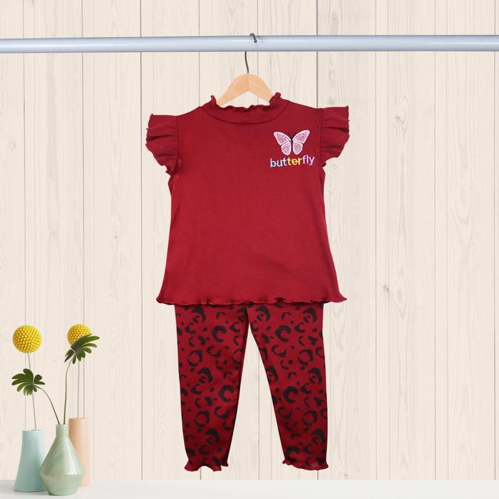 Owlet - Setelan Anak Perempuan / Setelan Bordir / Baju Anak Perempuan Fashion - Set Butterfly Maroon, Xxl