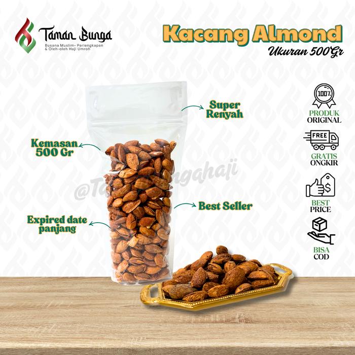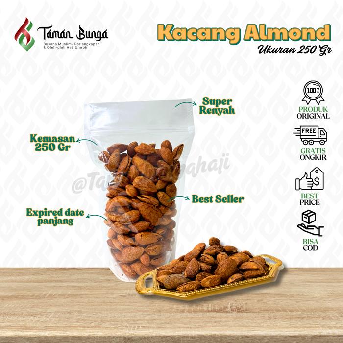 Kacang Almond Raosted / Kacang Oleh-Oleh Haji Umrah (100 PERSEN Original) - 250 Gr