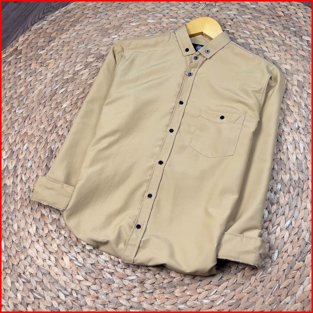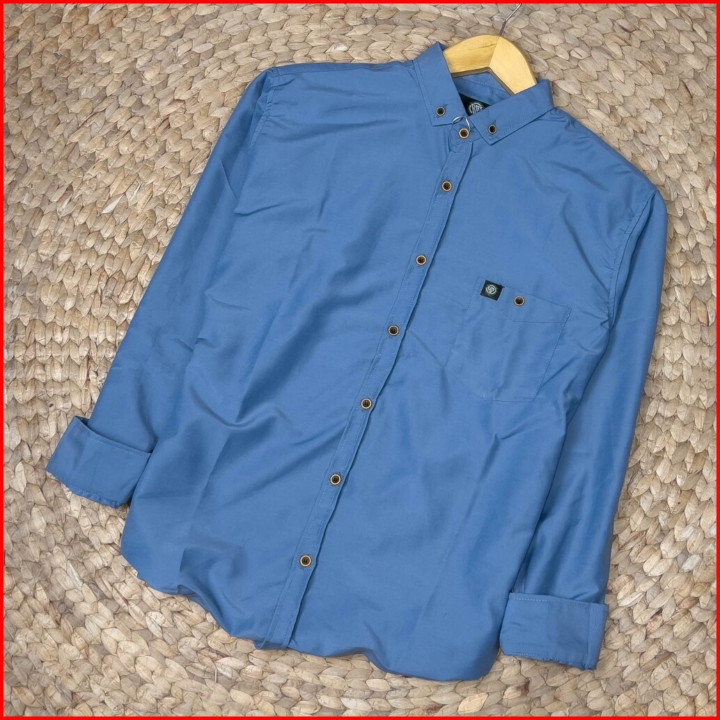Kemeja Pria Polos Lengan Panjang Biru Denim Basic Casual Premium