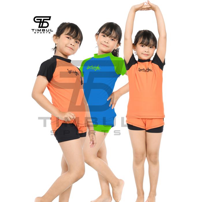 Set Stelan Atasan Dan Celana Hot Pant Short / Legging Baju Olahraga Jogging Lari Senam Renang Anak Unisex Perempuan Cewe