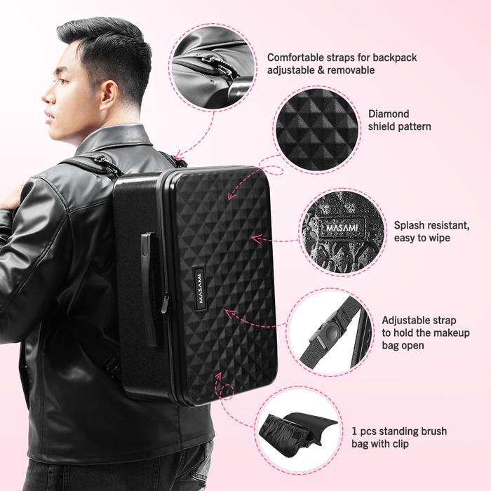 Masami X Leo Afandi Xl Glam Box In Black Diamond Shine / L Glam Box In Black Diamond Matte Makeup Bag Mua Tas Make Up Ta