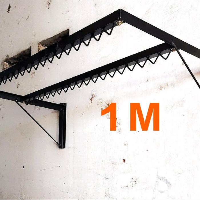 Jemuran Lipat Tempel Dinding Muat Banyak Besi - Hitam, L 50 Cm X 1 M