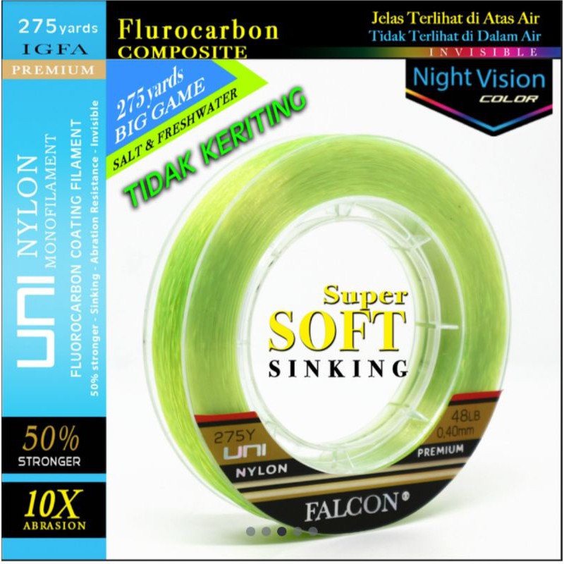 Senar Pancing Falcon Uni 275 Yards Yellow Fluo Night Vision