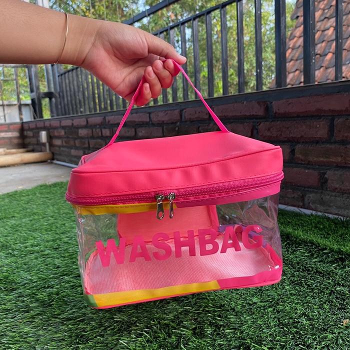 Tas Kosmetik Washbag Serba Guna Portable Waterproof Transparan Pouch Travel Organizer / Tabung - Fanta