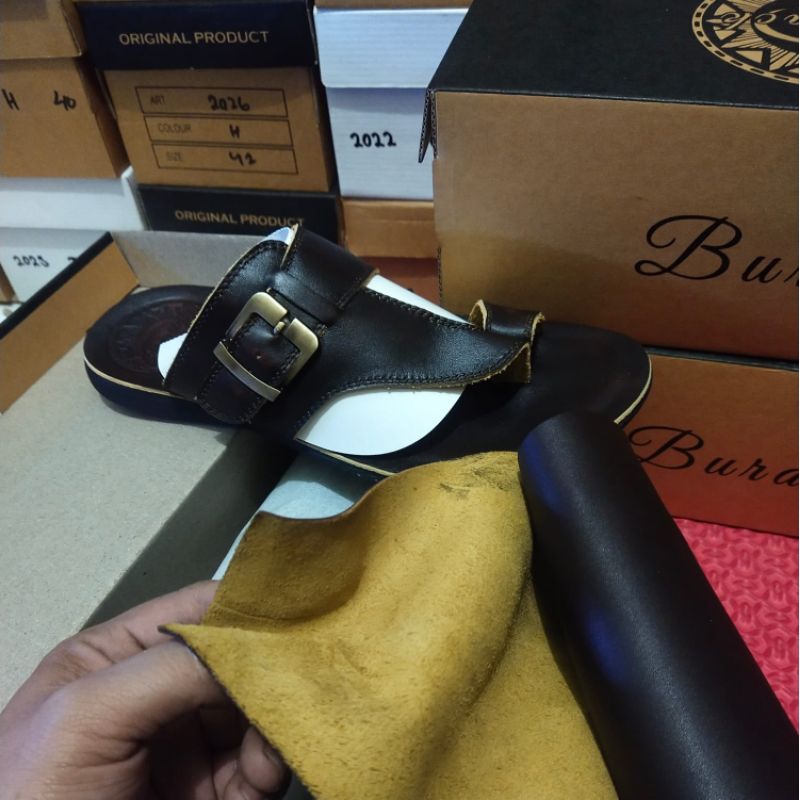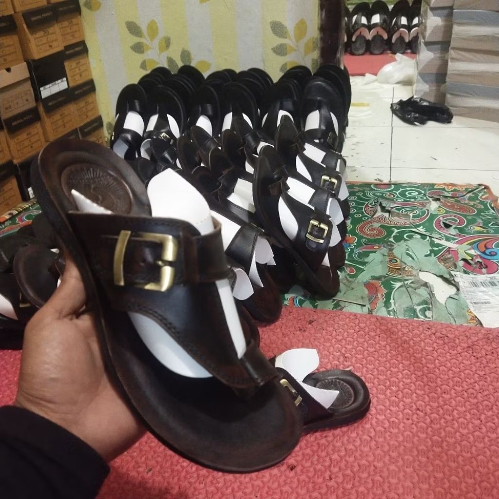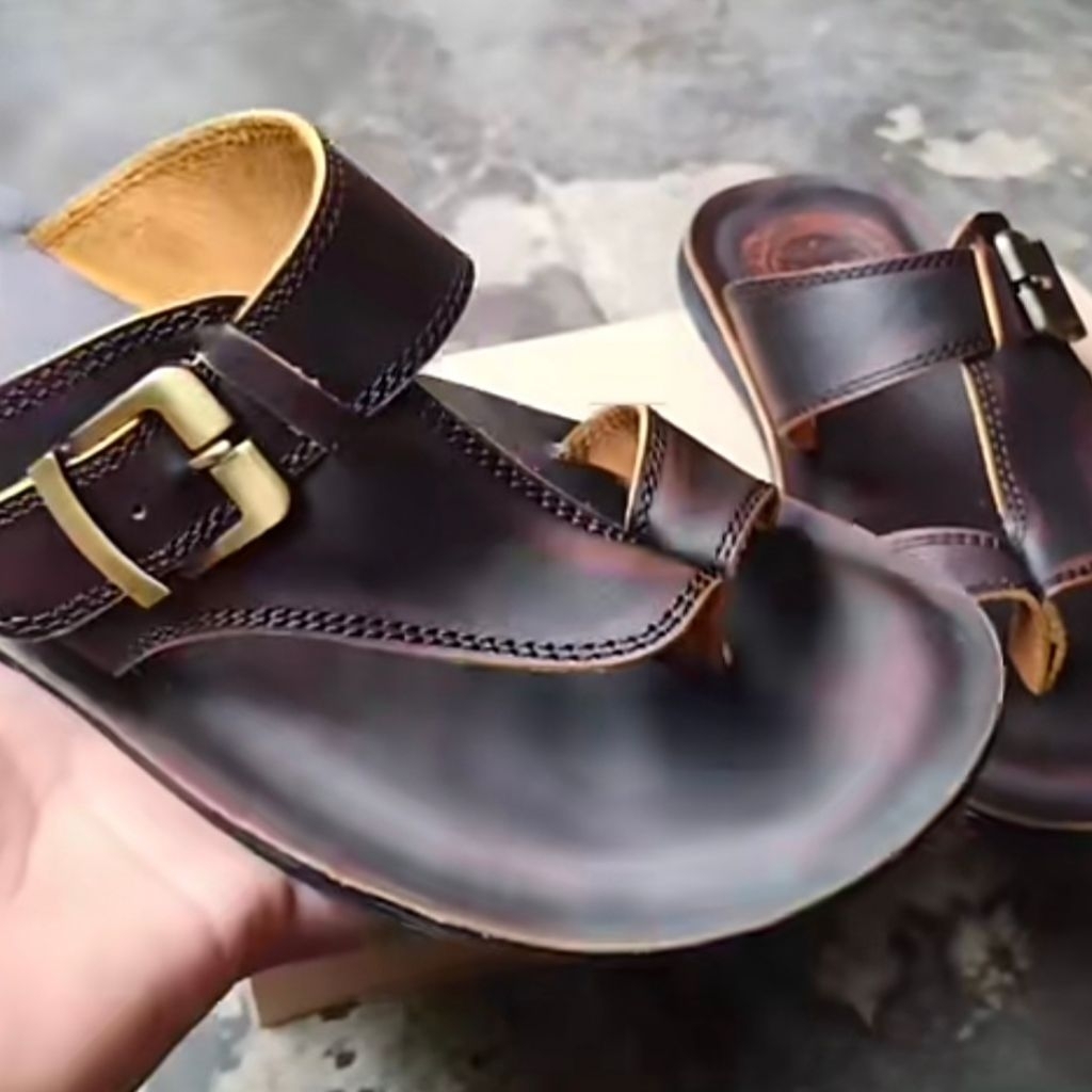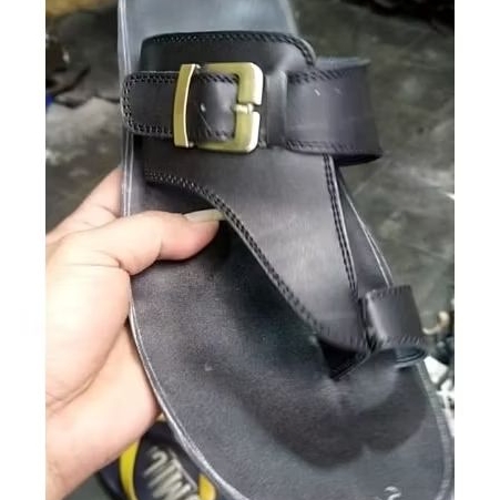 Sandal Pria Ful Kulit Asli Model Jepit Gesper Kualitas Premium Warna Hitam Dan Coklat