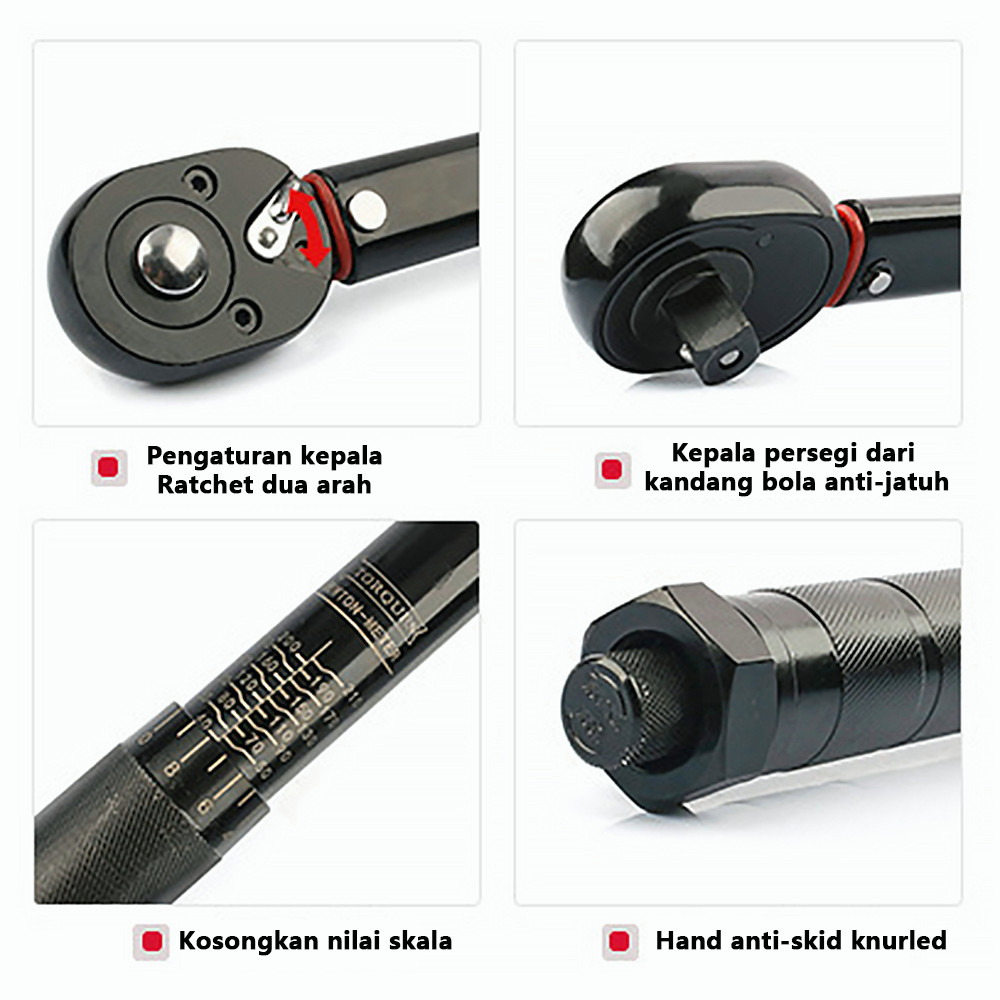 1/4 1/2 Torsi Preset Torsi Kunci Pas Drive Alat 5-210 Nm Positif Negatif Dua Arah Penyesuaian Kunci Pas Perb
