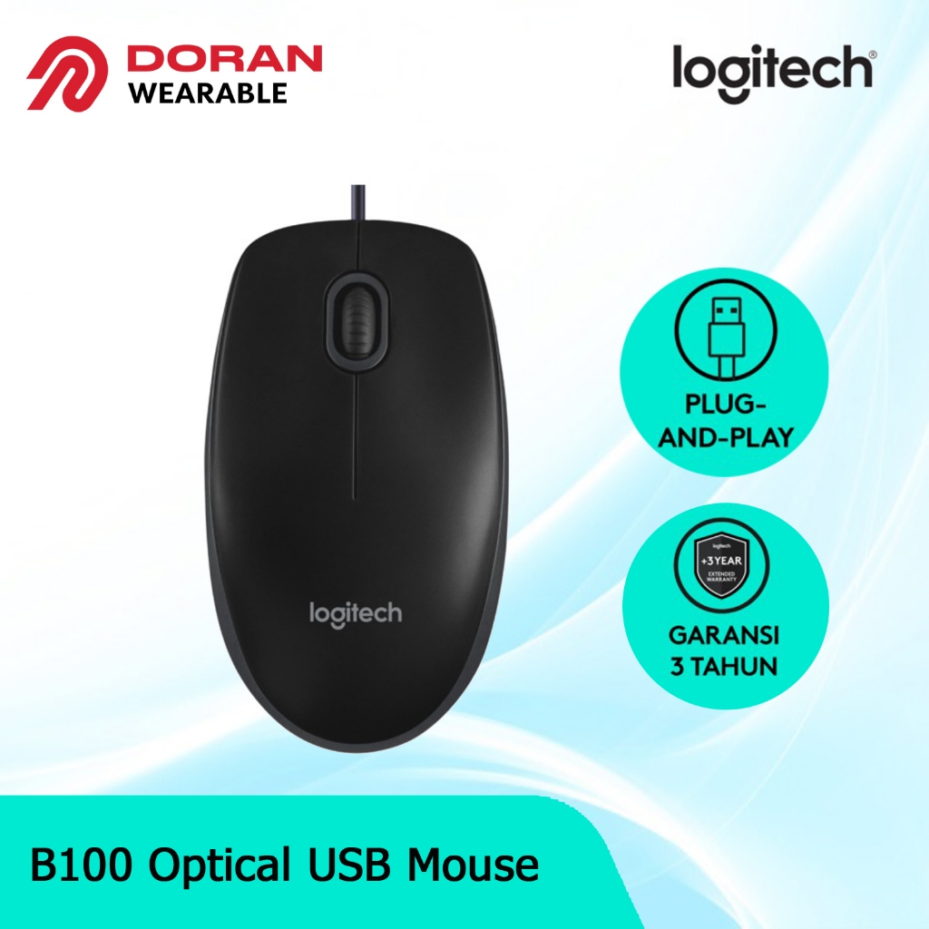 Logitech B100 Mouse Kabel USB Optical - Garansi 3 Tahun