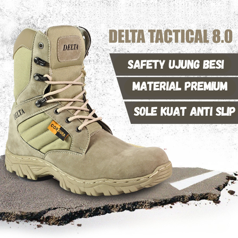 Sepatu Pria Boots Safety Ujung Besi - Cordura Tactical Krem Hitam - Sepatu Safety Pria Outdoor Tracking - Wildshoes Offi
