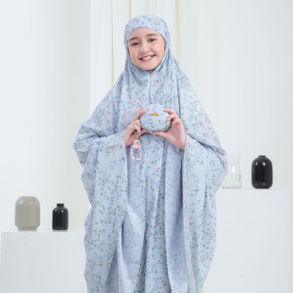 Mukena Traveling Mini Pouch Anak Perempuan Usia 6-12th Resleting 2in1 Parasut Motif Kombinasi