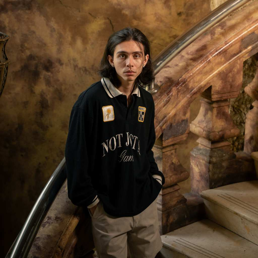 Polo Long Sleeve Lucha Black Walkvibes Waffle Fabric