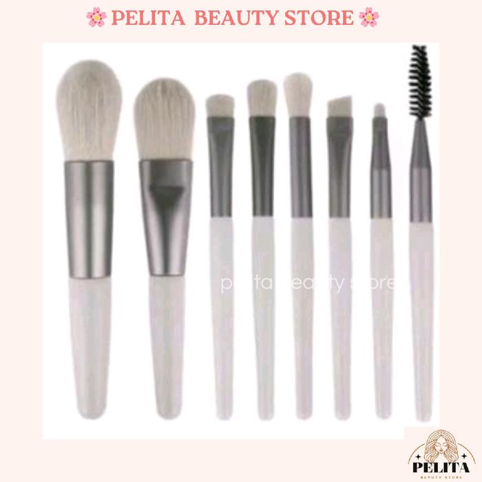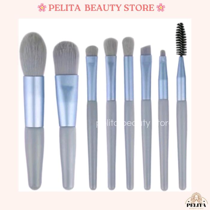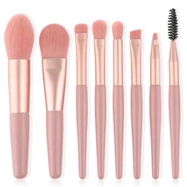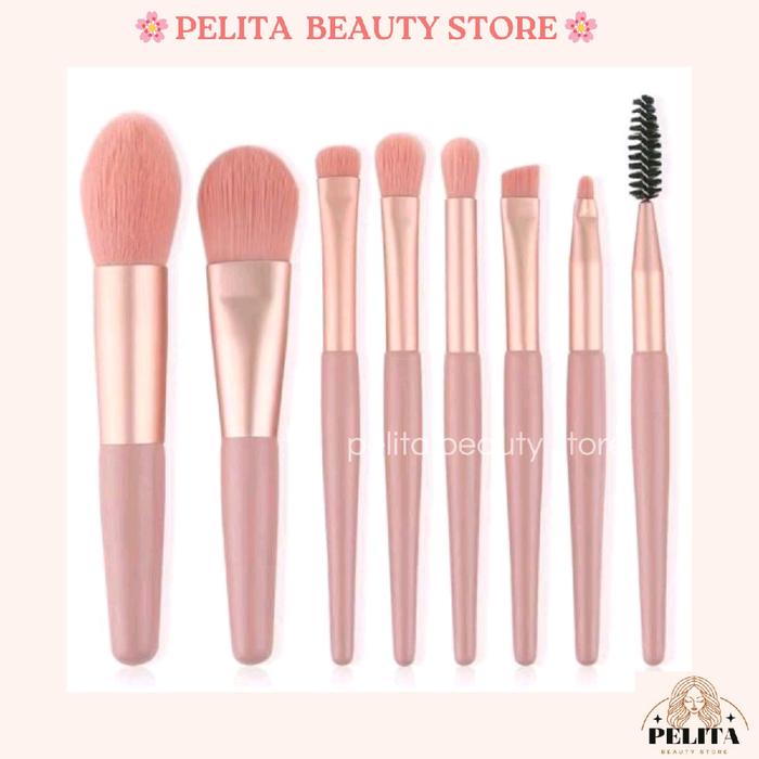 Kuas Rias Set 8 In 1 Pouch Bening Set Kuas Makeup - Pink, 1 Pcs