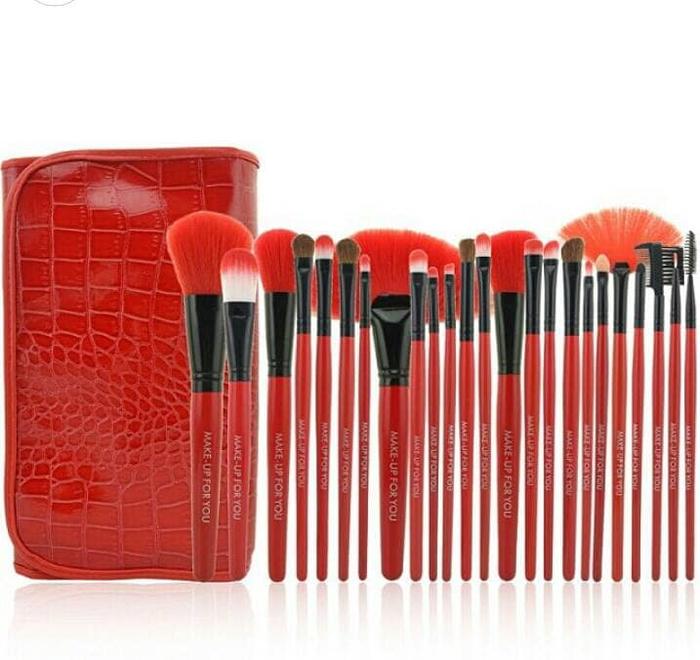 Make Up For You Kuas Dompet Make Up Brush Set Isi 24Pc Red/Pink