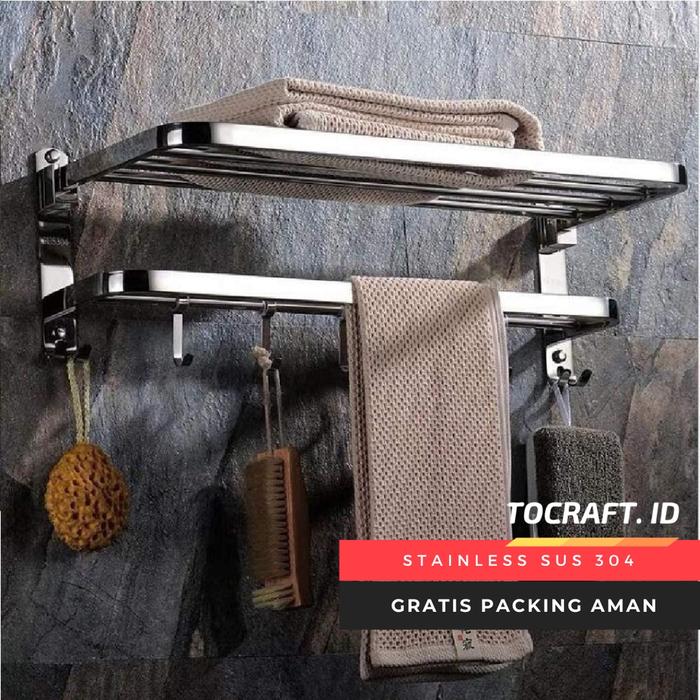 Tcid Rak Handuk Stainless 304 Gantungan Handuk Tempel Kamar Mandi - slver
