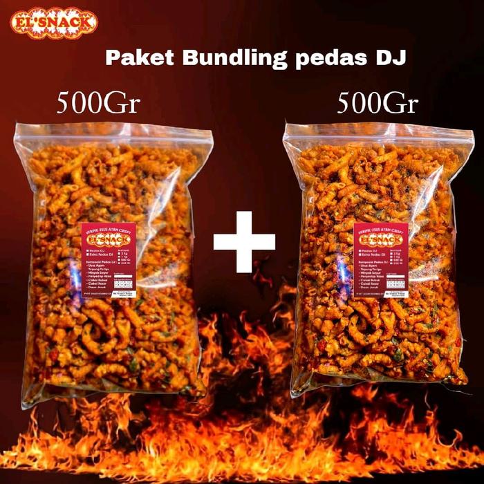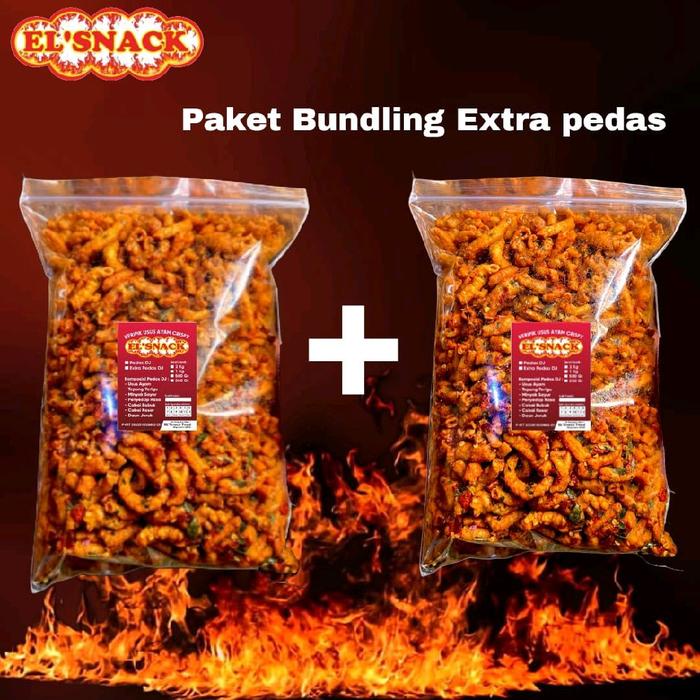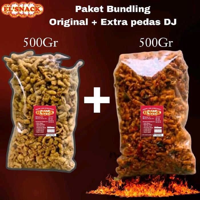 El'Snack Paket Bundling Extra Pedas & Original Keripik Usus Crispy Pedas Daun Jeruk Bumbu Chili Oil Asli Camilan Asin Ku
