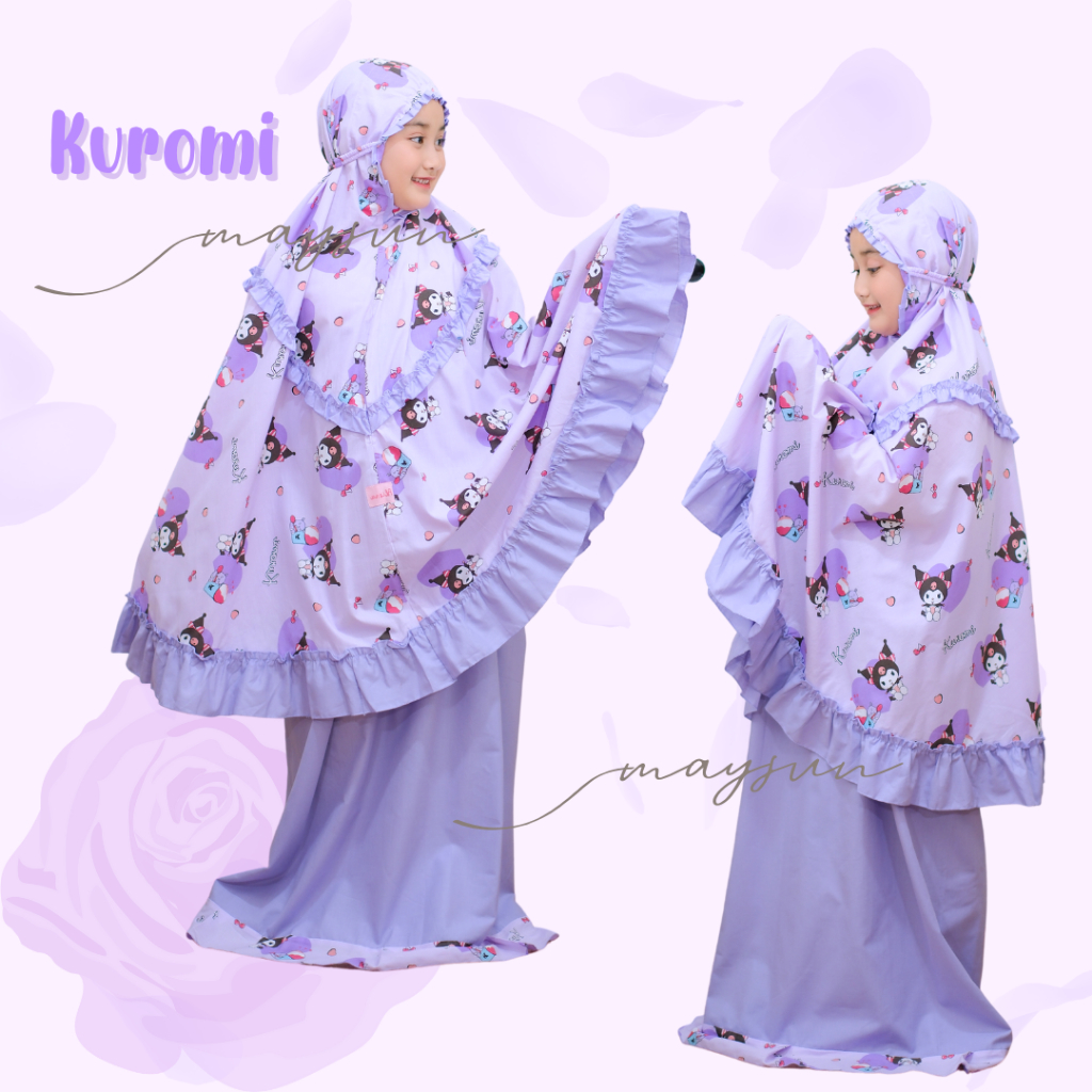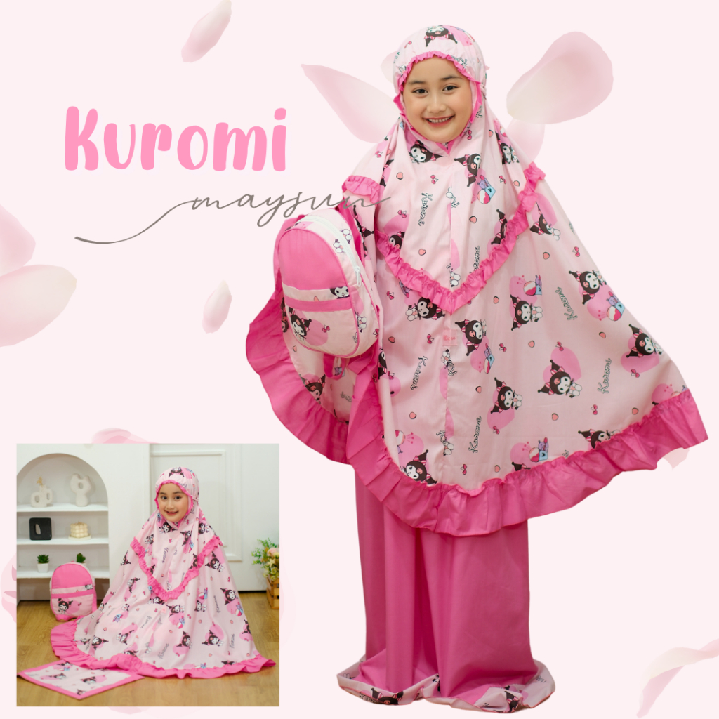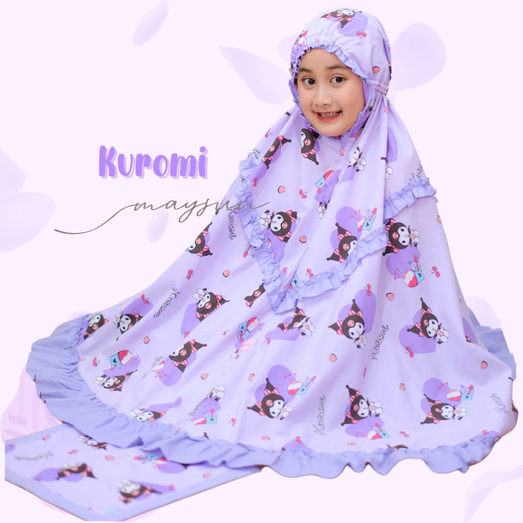 Mukena Anak Karakter 3in1 Kuromi Lilac/Pink Free Tas Ransel Dan Sajadah Muka