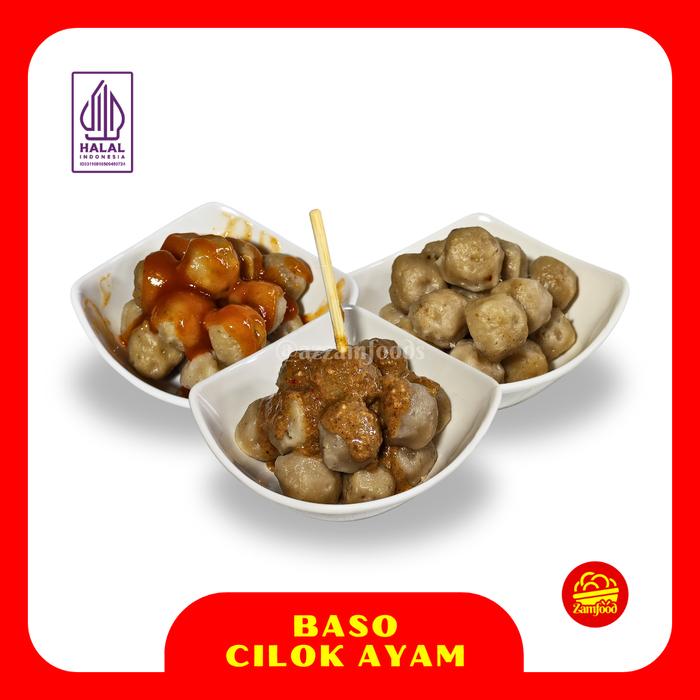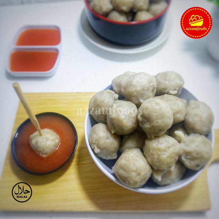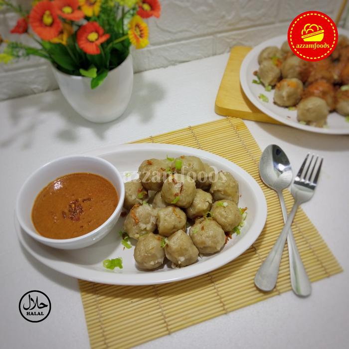 Azzamfoods Baso Cilok Ayam Frozen Isi 50 Pcs Lengkap Dengan Saus Dan Bumbu Kacang - Saus Pedas