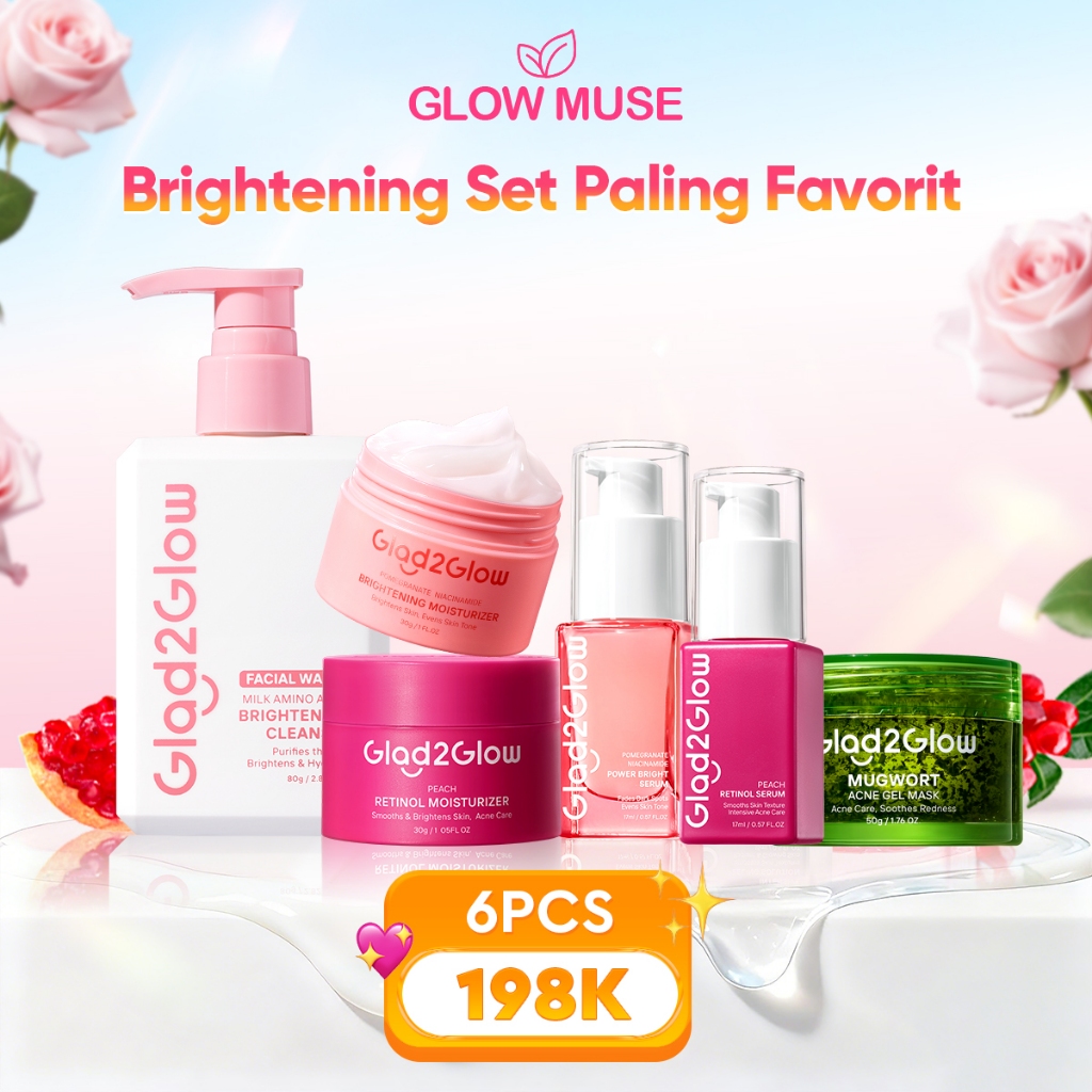 [100% ORI]Glad2Glow Glowing Renew & Acne Care bundle all in 1 6in1-Brightening toner+Brightening Moisturizer+Cleanser+Br