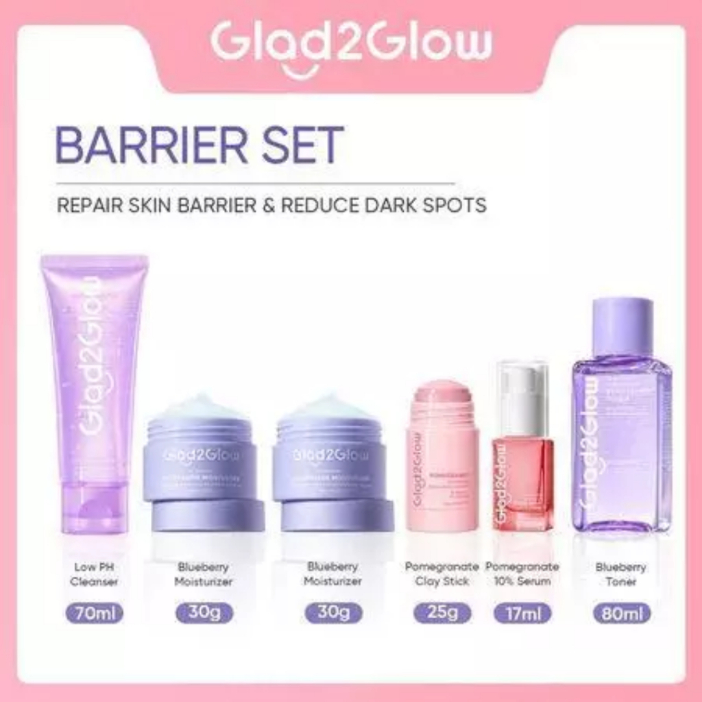 Paket Glad2Glow 6 in1 Bundle Skincare Glad2Glow Glowing Set G2G Moisturizer Serum Peeling Face Wash Sabun Cuci Muka Clay