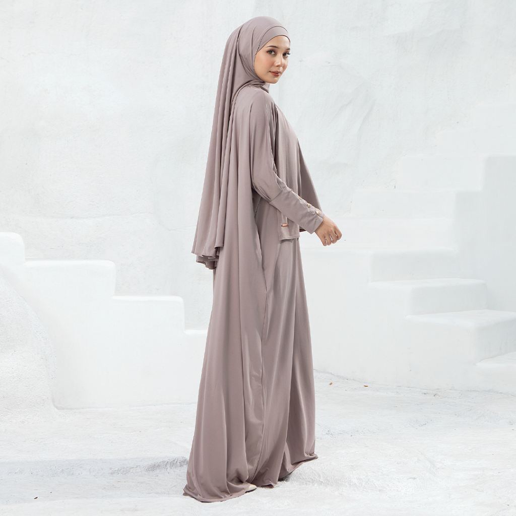 Hafisa Abaya Set (Abaya Gamis Set Khimar Haji dan Umrah Bahan Jersey)